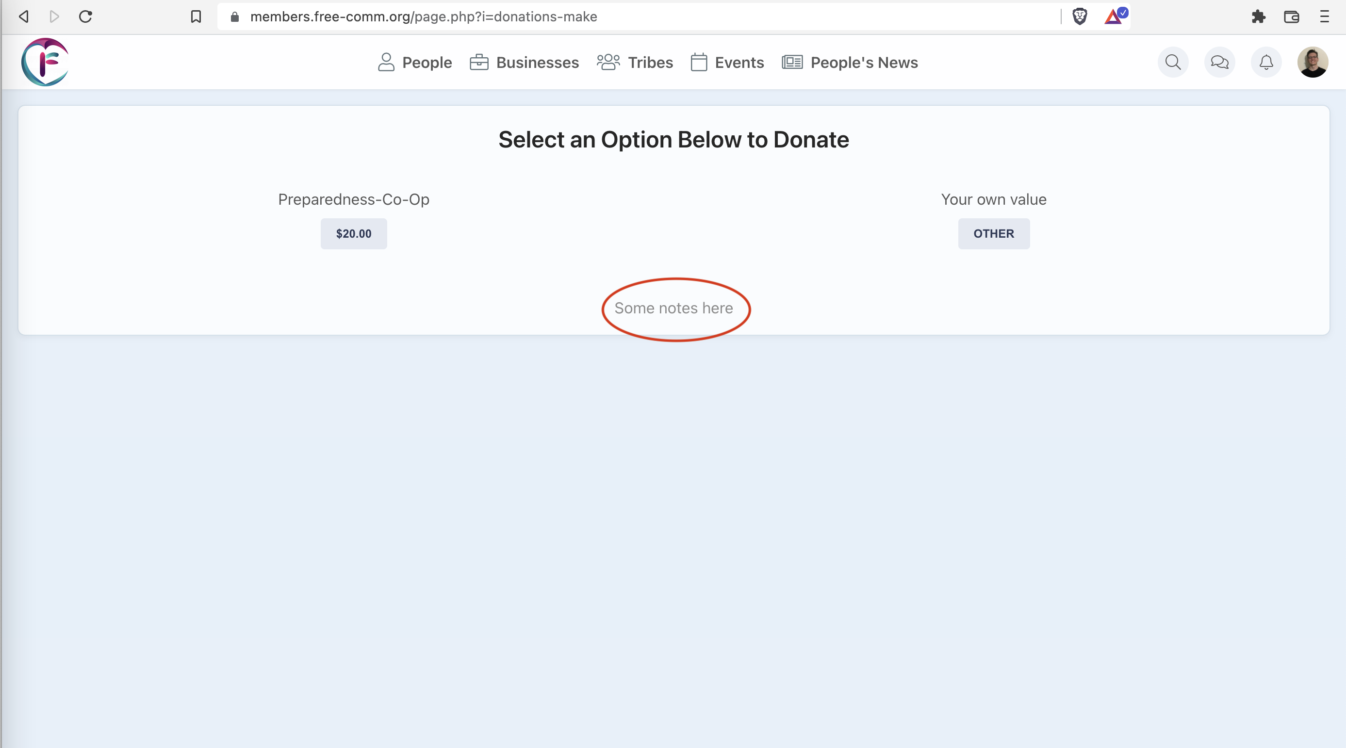 How do I edit the text "some notes here" at the bottom of the make donations page?