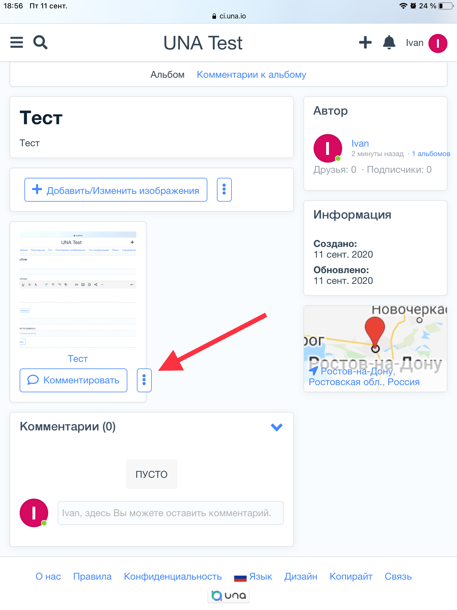 Incorrect display of the block under the photo in albums