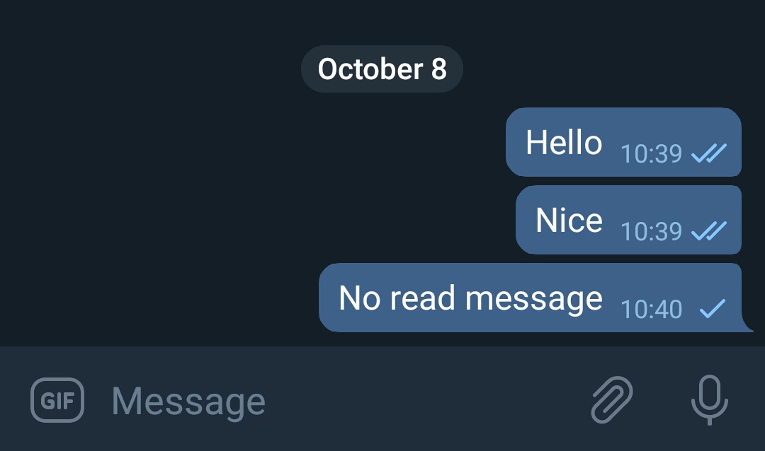 By default you have ability to view thumbnails of the members who read the message near the latest read message. It means that the all previous messages has been also read. Also you may see here the time when message has been created. So, it is not allowed to detect exact time, but allow to understand which messages has been already read by who and approximate time.