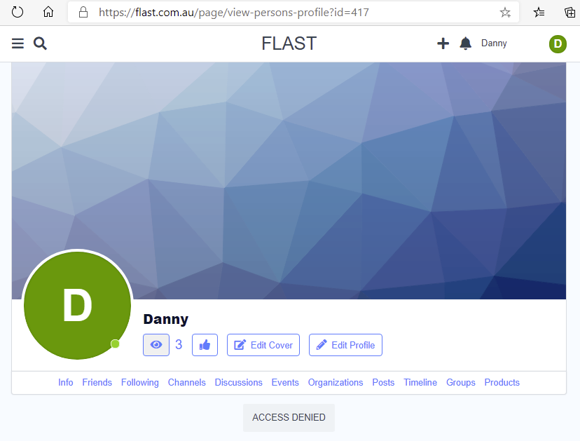 However when the member logs in with that member level they can't see their own profile, "ACCESS DENIED". See in the URL the -page is view-persons-profile?id=417.