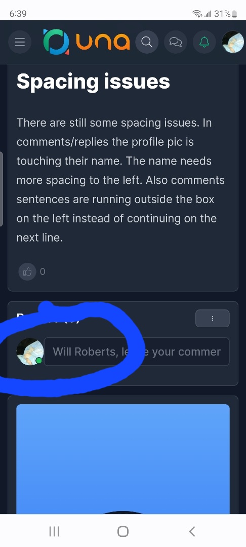 There are still some spacing issues. In comments/replies the profile pic is touching their name. The name needs more spacing to the right. Also comments sentences are running outside the box on the left instead of continuing on the next line.