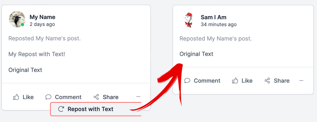 Reposting a Repost with Text only shares the original post and not the Repost with Text