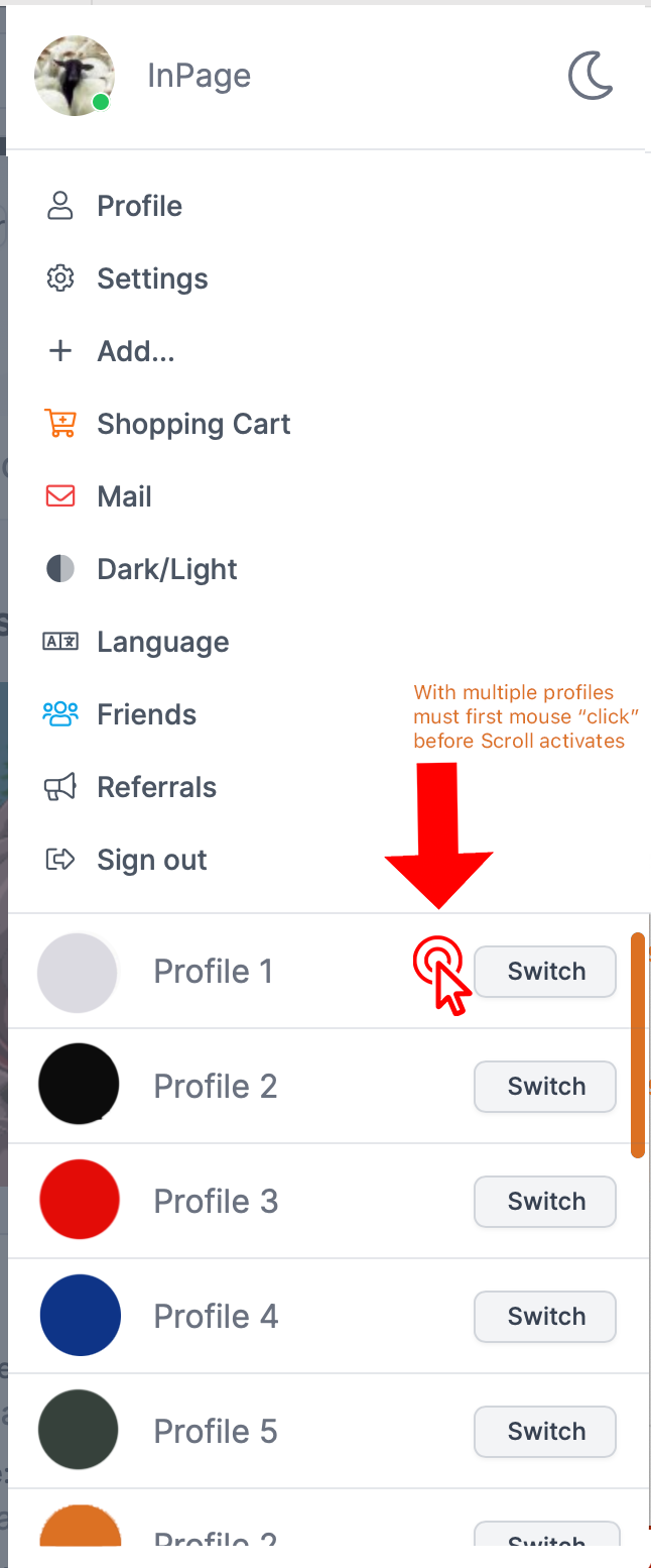Artificer Menu "Profile Navigation" is not active, must click to activate