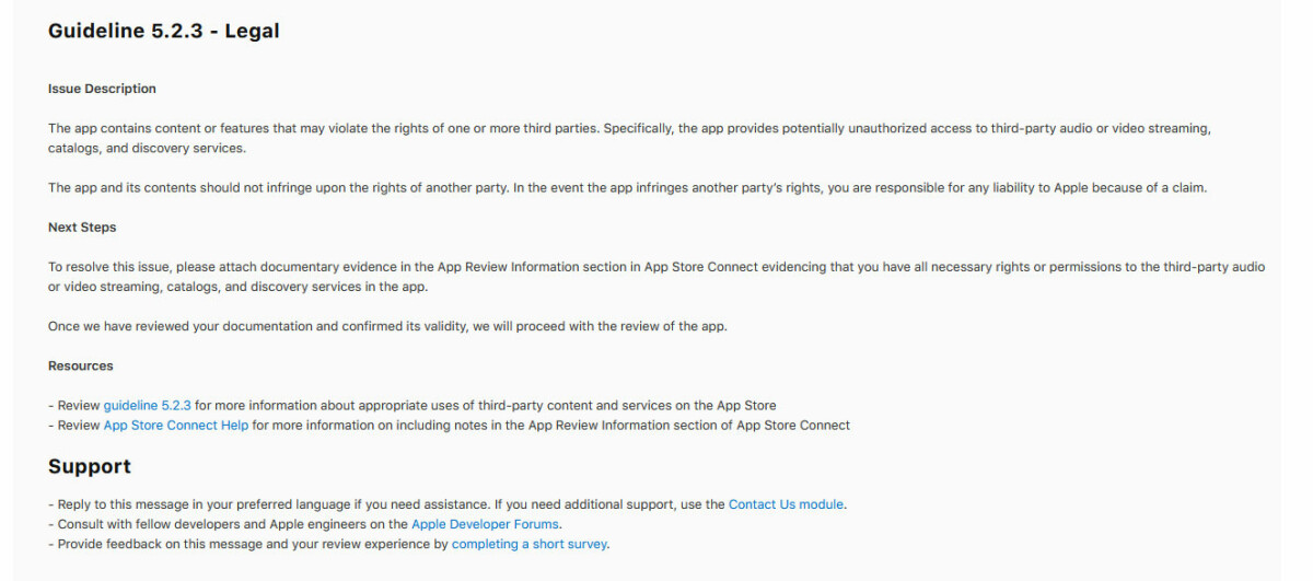 I uploaded a Radio live streaming app in Apple store. It's Rejected because 5.2.3 Legal: Intellectual Property - Audio/Video Downloading. In the image I upload the issue; is anyone know that how I can fix the issue? Please anyone know how to fix let know. Thank you.