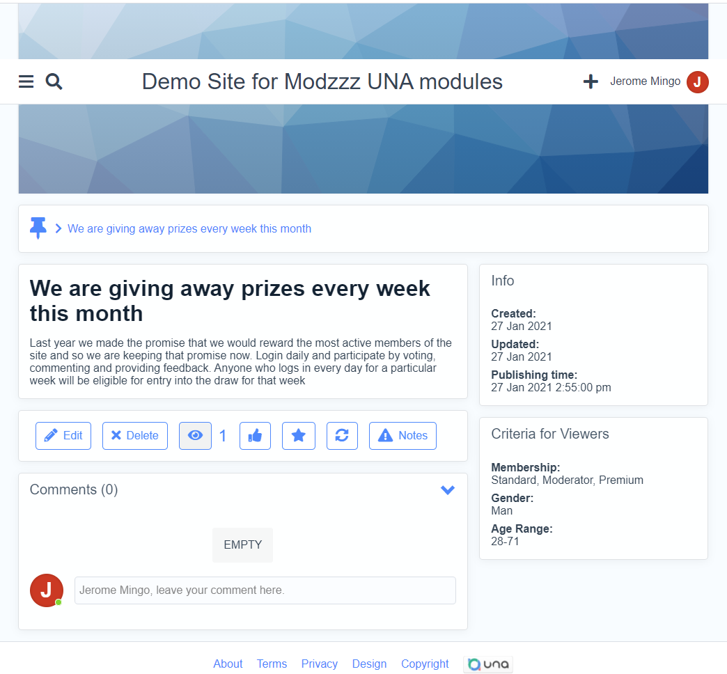 You can view my full list of modules at https://una.io/page/products-author?profile_id=200