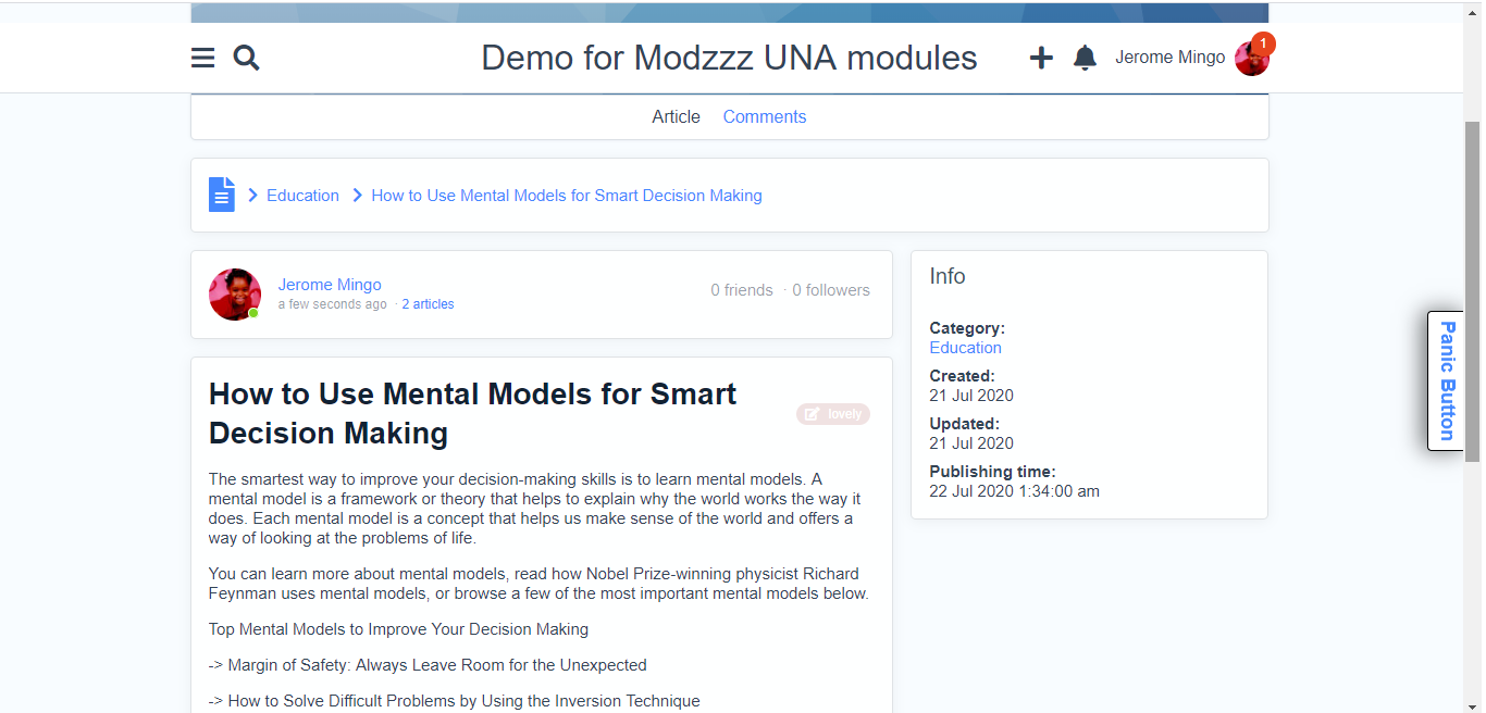 - Members can Like and Comment on an Article (the comment feature can be turned on/off)