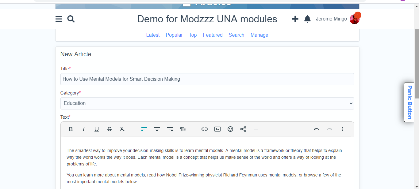 This module implements an Articles section on your site, allowing the creation of content by Site Administrators or optionally members who can post, share, and discuss articles. The module can link back to an original article to give credit to the original poster (if the Article was copied)