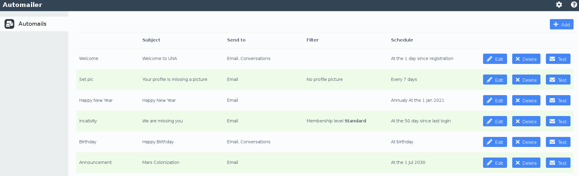 This module allows you to automate #mail #sending and #messages #sending. This is a tool for keeping your members connected to your site by sending them automatic #emails or #messages at a certain conditions/events. In other words this module allows you to create a so called #automail, which is automatically being sent to all members who meet selected criteria and at a configured date(s)/events.