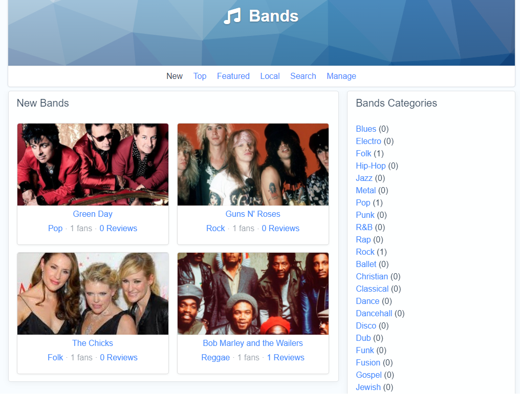 - Ability to browse local Bands