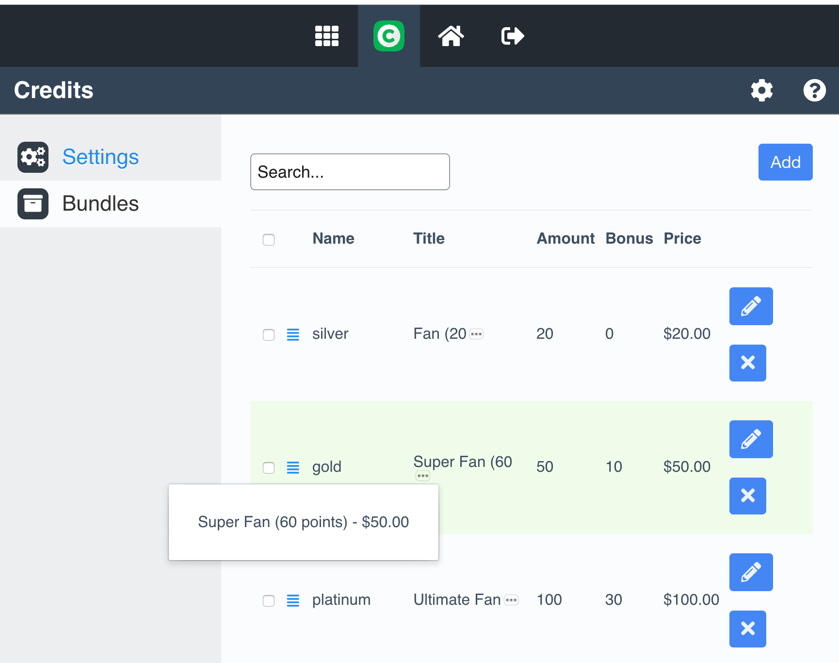 Create Bundles: The UNA site Operator can create Bundles of Credits for designated amounts - pre-selling currency that can be held by the user and utilised quickly within your site.