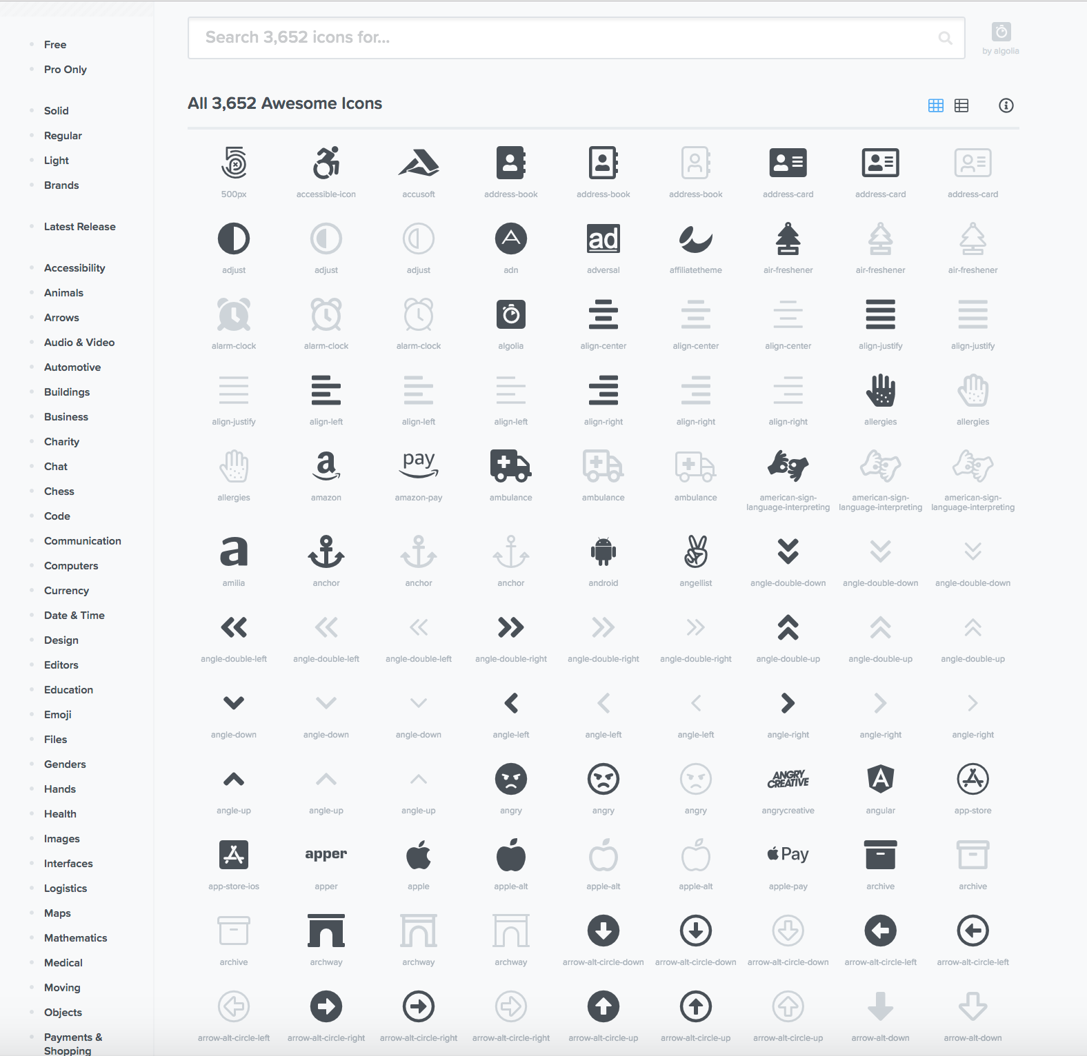 There are icons for every style and every occasion, with light and solid options available for most icons. You can see the full list of Icons at https://fontawesome.com
