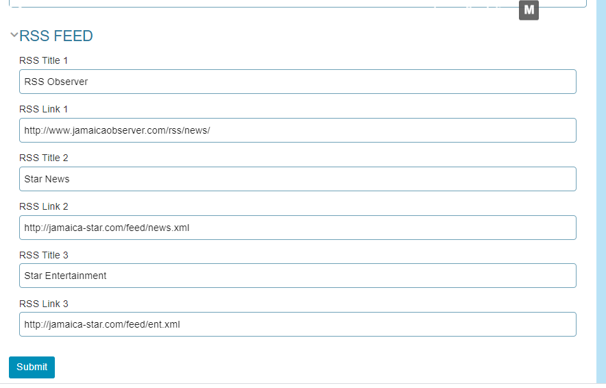 The page owner can manage up to three feeds. Each feed is displayed in a separate page block.