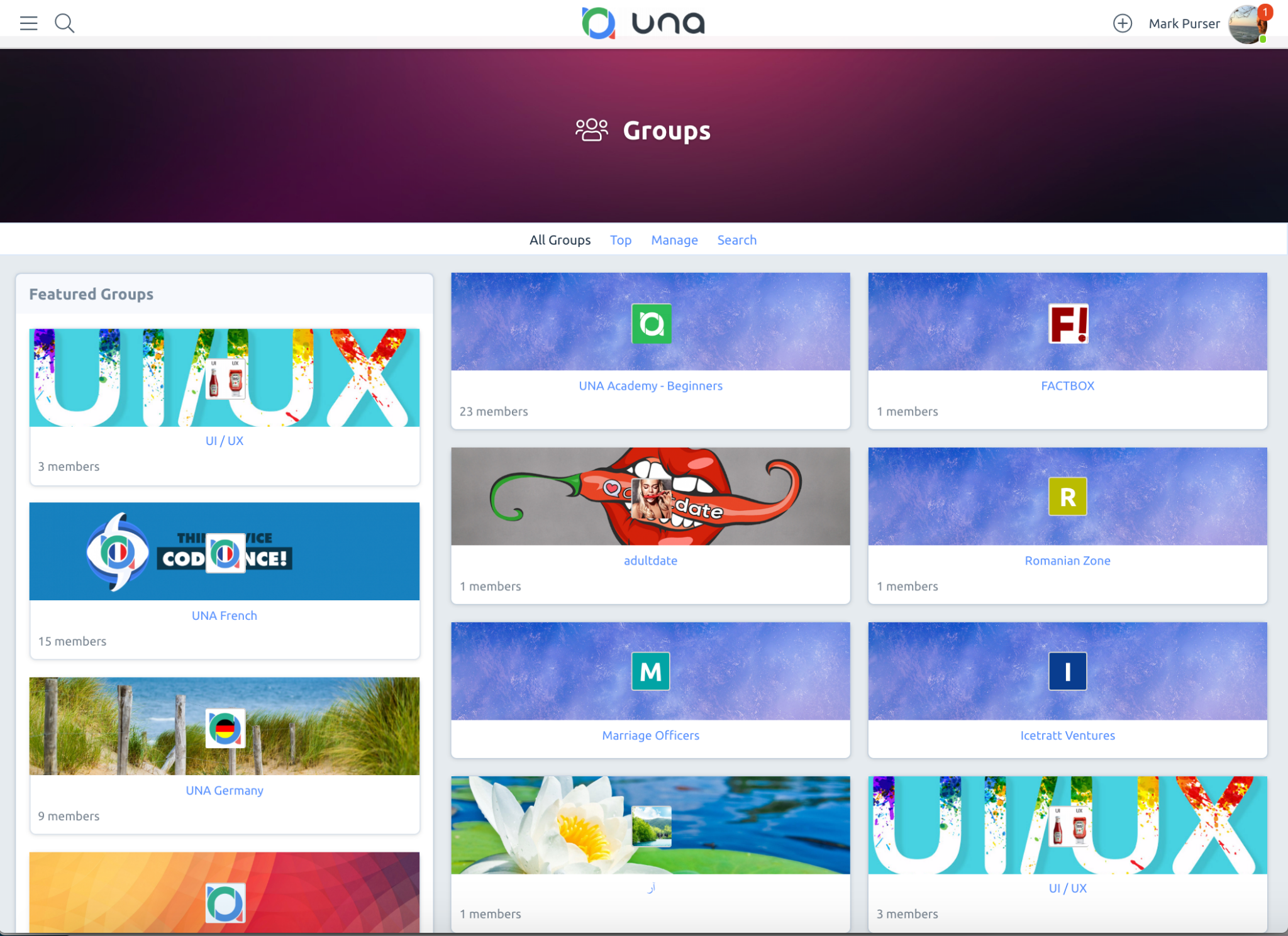 UNA’s Groups Module is the perfect tool for building a thriving online community! Whether your members are looking to connect with like-minded individuals, promote their business or brand, share knowledge and expertise, socialize with friends and family, or all of the above, the Groups Module has got them covered. With easy-to-use features for creating, managing, and engaging with your group members, you'll be able to cultivate a strong sense of community and foster meaningful conversations around shared interests and passions.