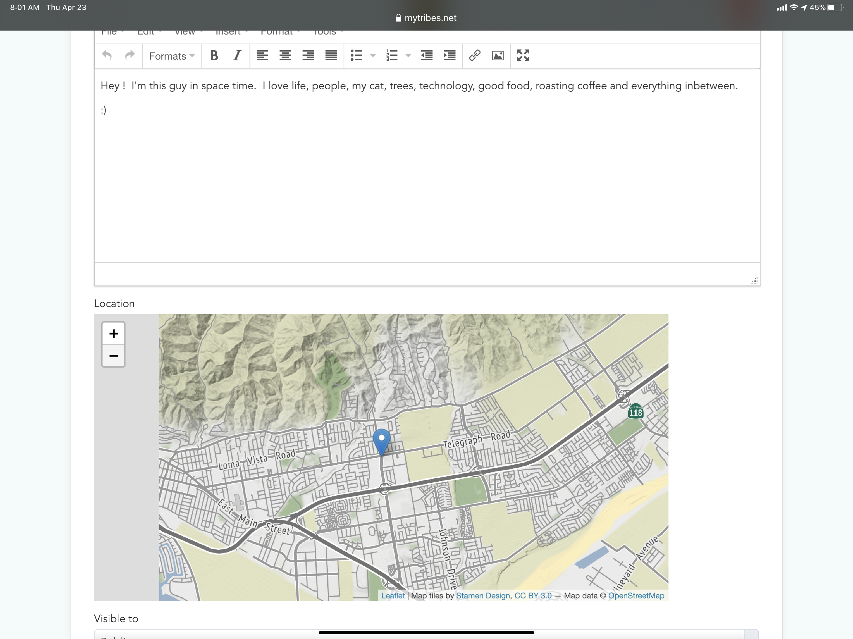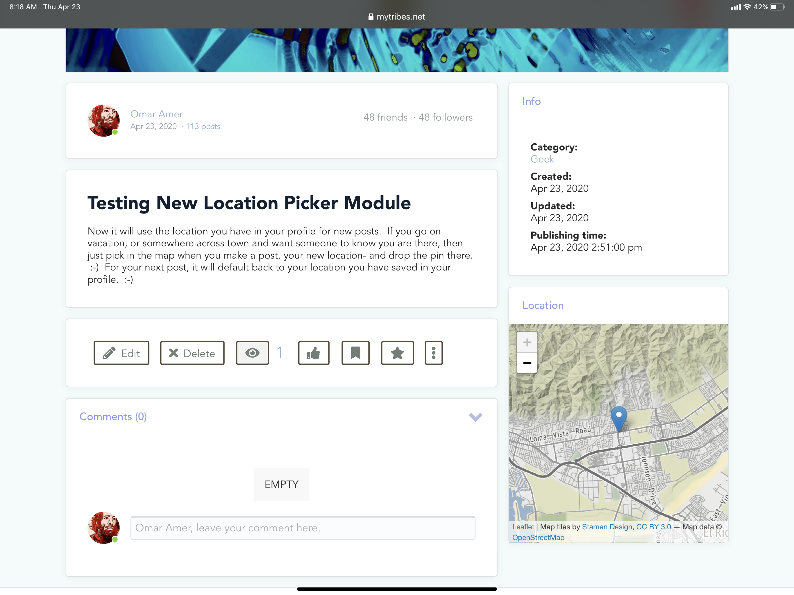 Although something is amiss. ? While constructing post, it shows my location as somewhere near barbados. but i have picked previously my location in united states inside the picker, and it shows correctly in my profile. when i submit the post, (not adjust map at all), it posts, and then no map shows. reload, no map there. no map at all. hm :D repeat again new post, also no map.