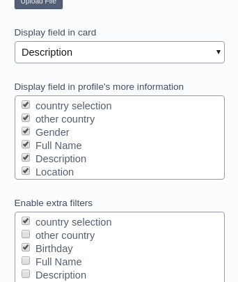 - Extra data fields is now displayed in the profile's cards. Admin can select 1 extra field to be displayed below the User's Name.