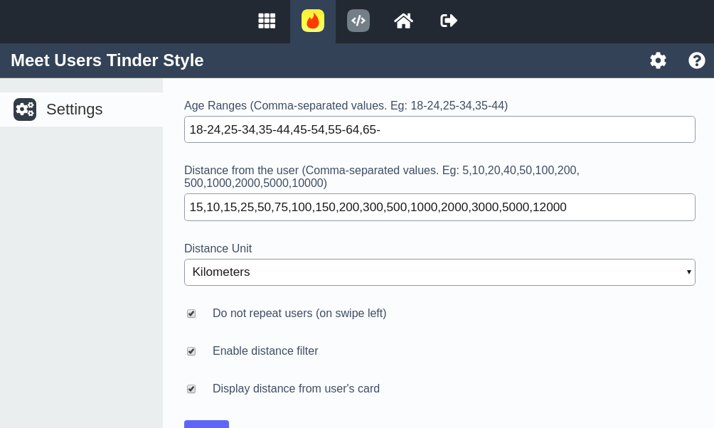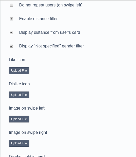 - Admin option added: "Do not repeat users", if the user did swipe left, that user will not be displayed again.