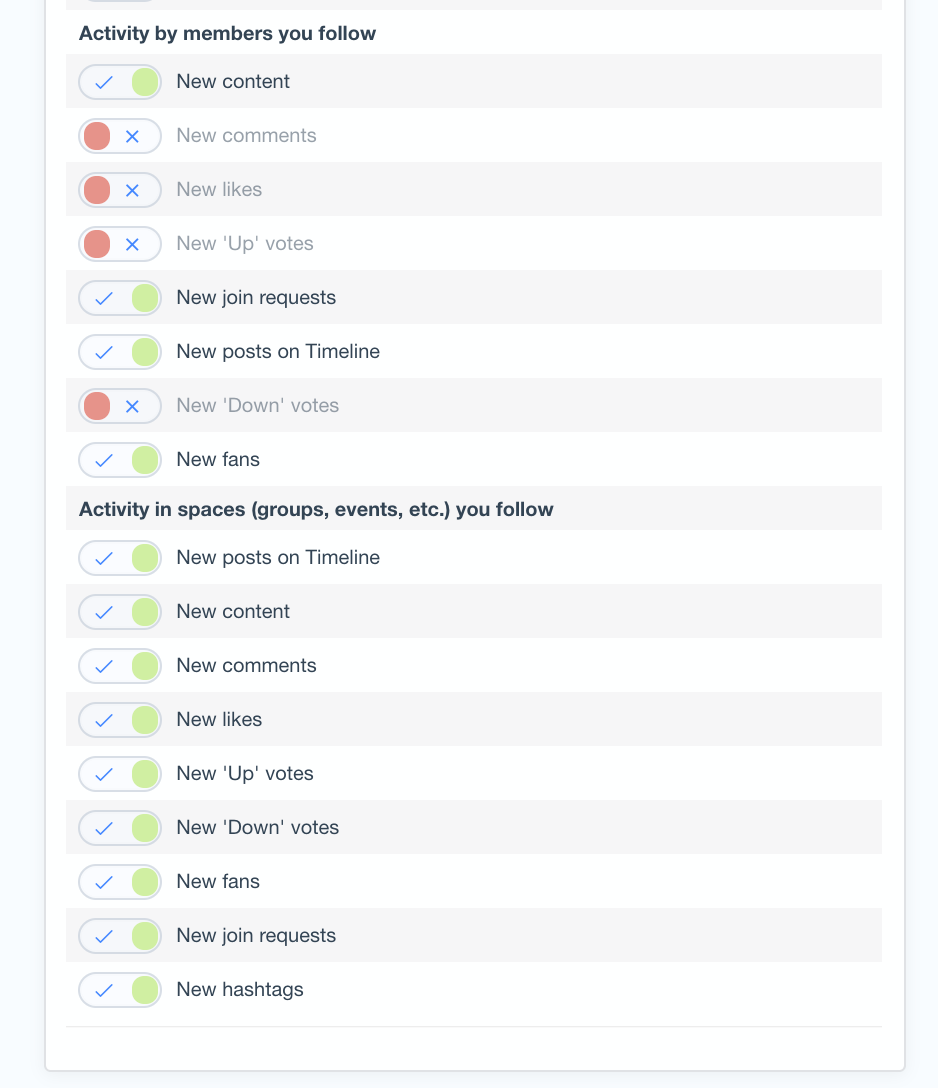 ☑ - All notifications subscription settings can be pre-set for all members via Studio and individually re-configured by recipients.