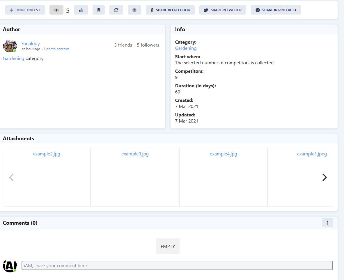 - Share a contest's page in social networks.