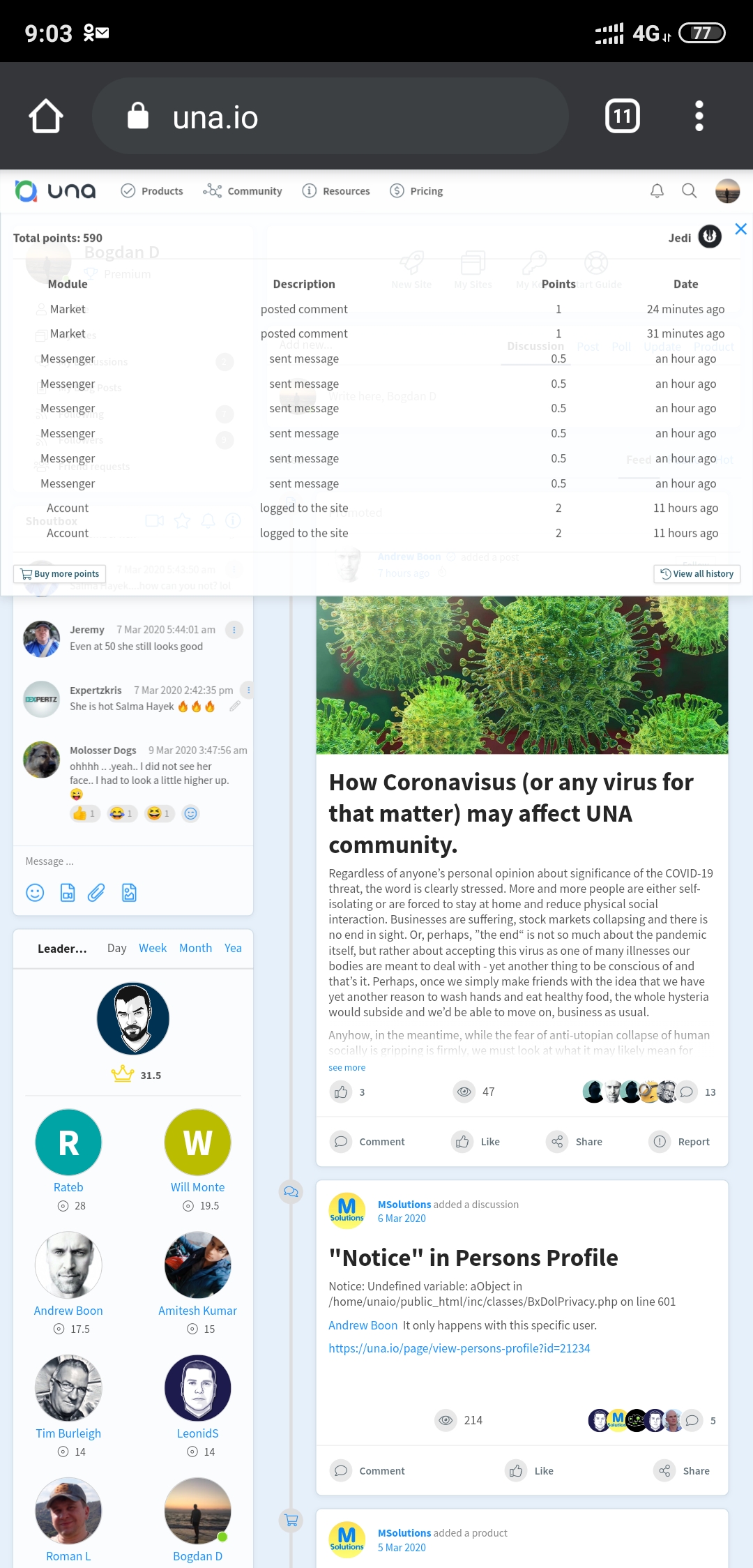 AQB Soft Same here, this leaderboard took out my index page. All blocks of the module had to be disabled to use the site. It's embarrassing, to say the least. One minute it was fine, a new member joined and now it's broken somehow.