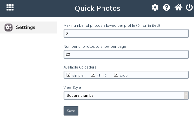 This module provides a very simple profile photos functionality. No any separate pages, no standalone photo view pages with comments, likes, etc. Just a Photos block on a profile page which simply lists all profile photos. Upon clicking a photo it is possible to view it in a larger size or open/download an original. A profile owner can easily upload, assign title, reorder photos, set profile photo, profile cover - all of this directly inside that block without having to even leave his profile page. The key feature of this module is the ease of uploading and viewing profile photos.