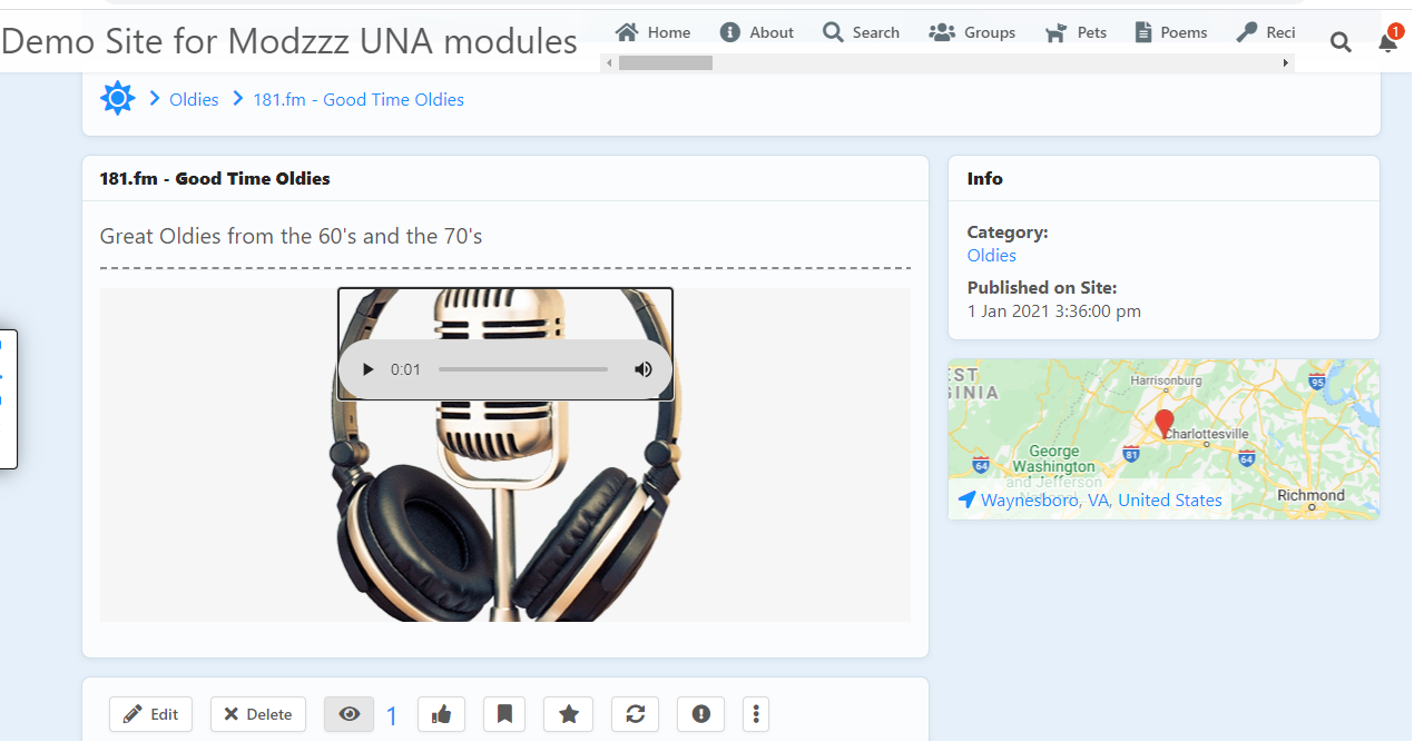 This module allows site administrators to create an Online Radio portal on the site where members will be able to listen to radio streams all day. This will give members another good reason to stay on the site. Site Members can also be given access to post stations also.