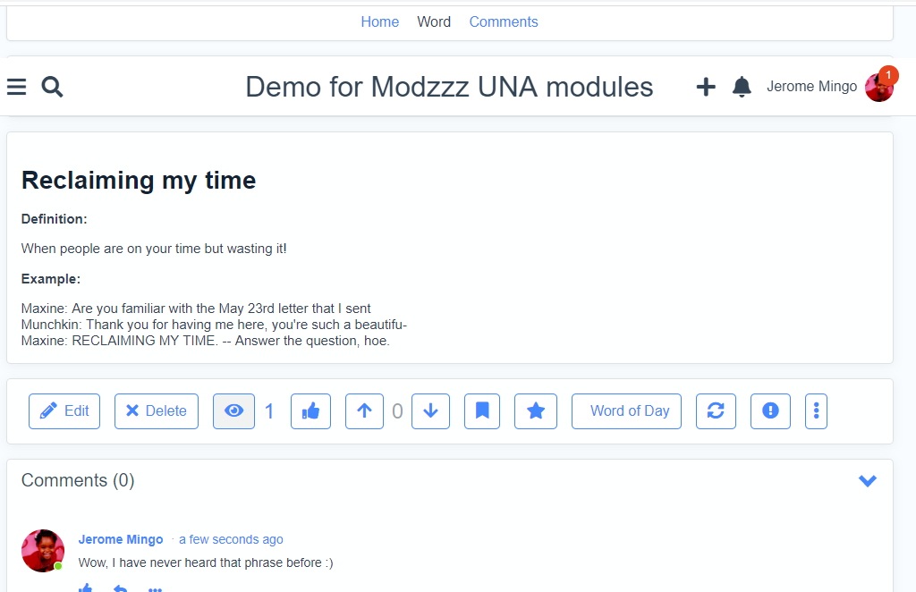 Word of the Day - Site Admin/Moderators are able to flag words as the Word of the Day. Members have ability to browse all words selected as Word of the Day in the past.
